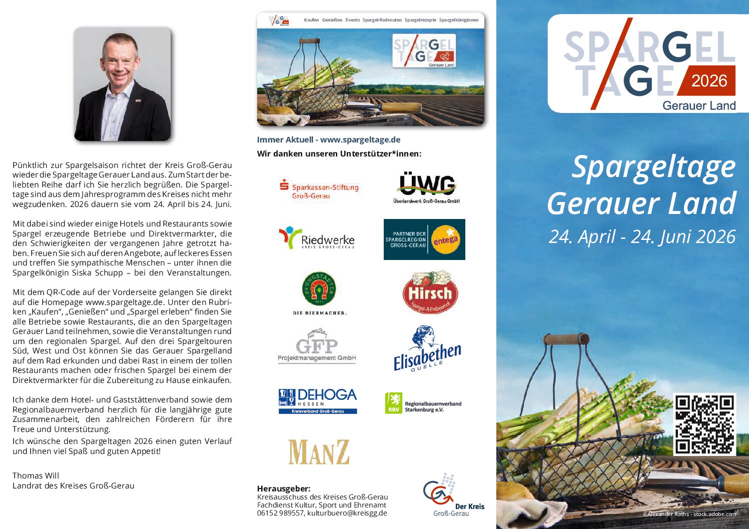 Pünktlich zur Spargelsaison richtet der Kreis Groß-Gerau wieder die Spargeltage Gerauer Land aus. Zum Start der beliebten Reihe darf ich Sie herzlich begrüßen. Die Spargeltage sind aus dem Jahresprogramm des Kreises nicht mehr wegzudenken. 2026 dauern sie vom 24. April bis 24. Juni.